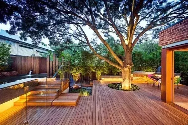 木質(zhì)材料也是別墅庭院景觀設(shè)計(jì)中非常受歡迎的材料之一,被稱為最有人情味的材料,設(shè)計(jì)上常通過選用防腐木、竹木或塑木等類型設(shè)置出戶外休閑平臺(tái),其色調(diào)和質(zhì)感讓人內(nèi)心舒適,充滿愜意;木板與植物相互搭配,使功能空間更貼近自然,讓人閑談歲月靜好。