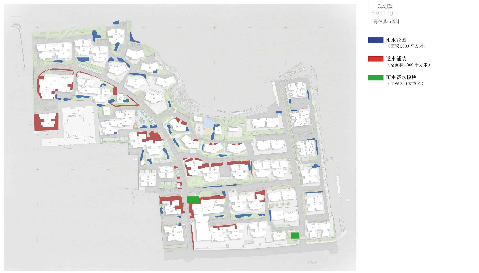 設(shè)計師優(yōu)先利用鋪裝、雨水花園等"綠色"措施來組織排水,以"慢排緩釋"和"源頭分散"控制為主要規(guī)劃設(shè)計理念,結(jié)合地形,將自然途徑與人工措施相結(jié)合,在確保小區(qū)排水防澇安全的前提下,最大限度地實現(xiàn)雨水的積存、滲透和凈化,促進雨水資源的利用和生態(tài)環(huán)境保護。